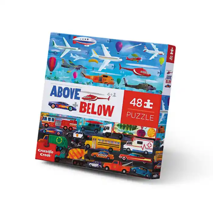 ¡Estos rompecabezas de arriba y abajo enseñan a los niños opuestos! ¿Qué hay arriba? ¿Qué hay debajo? Este se trata de vehículos en tierra y en el aire. ¡Tu hijo tiene que ser curioso y observador! El rompecabezas mide 20 "x 20". Impreso con tinta a base de soja sobre cartón reciclado, y cumple o supera los estándares de seguridad de EE. UU. Y Europa. Recomendado para niños de 4 años en adelante.