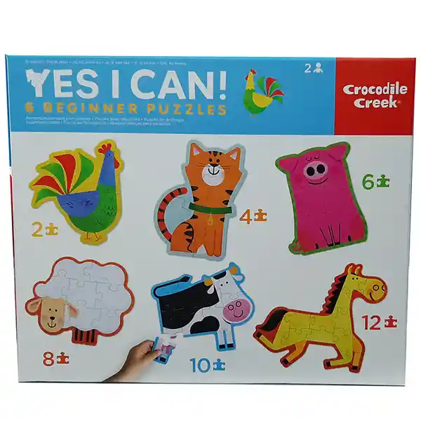 Una divertida caja de rompecabezas con 6 rompecabezas de animales con piezas grandes que las manos pequeñas pueden agarrar y armar fácilmente.