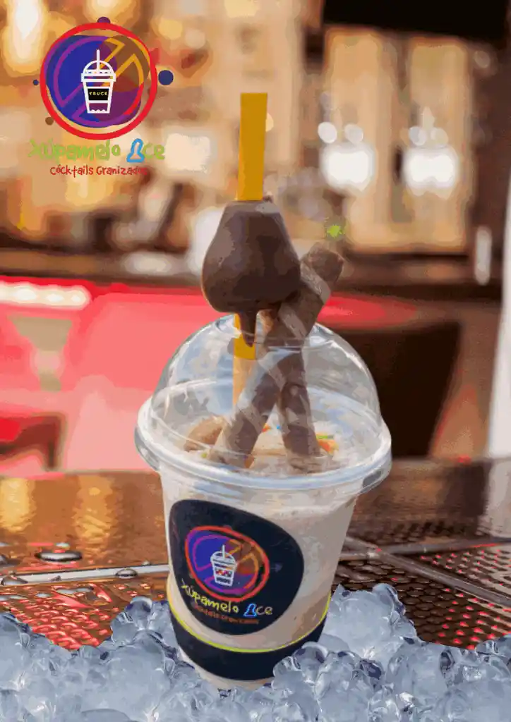 Granizado Cremoso de Baylis, acompañado de piazza , chip de chocolate, bombom erotico y bianchis.