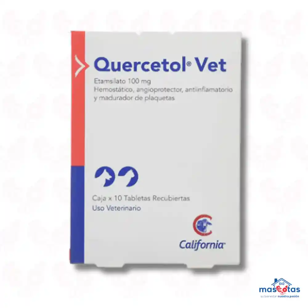 Quercetol Vet es un medicamento hemostático sistémico de uso veterinario diseñado principalmente para perros y gatos. Su función principal es el control de hemorragias al fortalecer la pared de los capilares y mejorar la adhesión de las plaquetas Descripción General Principio Activo: Etamsilato (100 mg por tableta). Forma Farmacéutica: Tabletas recubiertas de administración oral. Acción: Actúa como angioprotector y pro-hemostático sin riesgo de formación de trombos, reduciendo significativamente el tiempo de sangría. Indicaciones de Uso Se utiliza como coadyuvante en el tratamiento y prevención de hemorragias en las siguientes situaciones: Cirugías: Procedimientos pre y posquirúrgicos en áreas como odontología y urología. Traumatismos: Control de sangrados por accidentes o heridas traumáticas. Reproducción: Hemorragias uterinas disfuncionales en hembras y durante manipulaciones obstétricas. Dosificación y Administración Dosis Terapéutica: Generalmente se recomienda entre 6.25 y 12.5 mg por kg de peso corporal. Frecuencia: Cada 6 a 8 horas, según la gravedad del caso y el criterio del especialista. Uso Pre-quirúrgico: Se aconseja administrar la dosis unos 30 minutos antes de la intervención. Importante: Este medicamento requiere fórmula médica veterinaria. No debe administrarse sin la supervisión de un profesional que determine la dosis exacta según el peso y estado de salud de tu mascota.