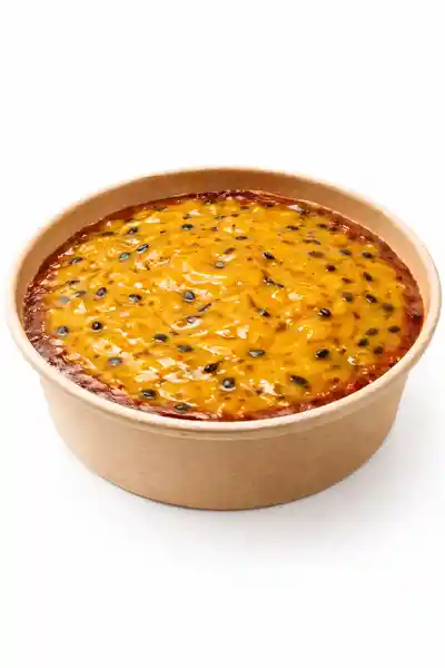 Torta vasca de queso personal con topping de mermelada de maracuyá, ideal para los amantes de lo acido. No te quedes sin probarlo.
