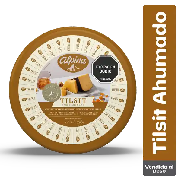 El Queso Tilsit Alpina es un queso semi duro, con un perfil peculiar amaderado, leves notas dulces y picantes combinadas con sabor lácteo fresco, acompañado de un artesanal sabor ahumado perfecto para tus cenas o una tabla de quesos.