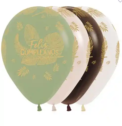 R-12 GLOBOS BOMBAS FASHION INFINITY HOJAS TROPICALES FELIZ CUMPLEAÑOS X12 UNDS