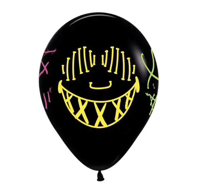 R-12 INF GLOBOS BOMBAS SEMPERTEX FASHION NEGRO 4 CARAS MÁSCARAS NEÓN HALLOWEEN X12 U