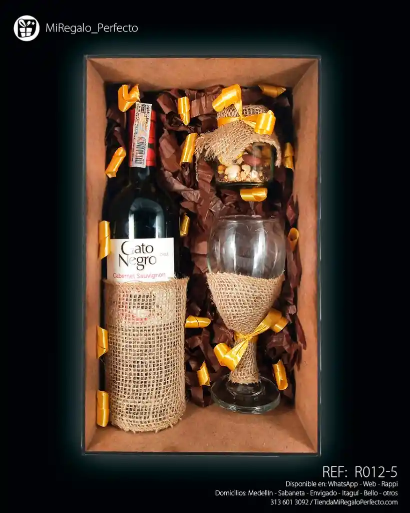 Regalo En Cofre De Madera Con Botella De Vino Gato Negro, Botellita De Cristal Con Frutos Secos, Burbuja X3 Y Copa De Cristal. Te Incluye Su Decoración A Temática Con Cintas Y Moños, Adhesivos Y Tarjeta Personalizada. . .. .