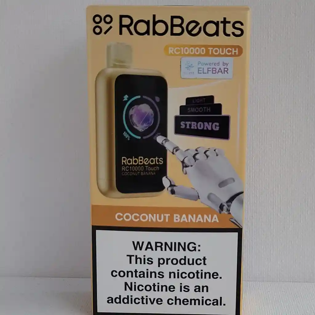 VAPEADOR RABBEATS 10.000 VAPEADAS (NORMAL) SABOR COCONUT BANANA. ESTE PRODUCTO CONTIENE NICOTINA UNA SUSTANCIA ADICTIVA, PERJUDICIAL PARA LA SALUD , PROHIBIDA SU VENTA A MENORES DE EDAD