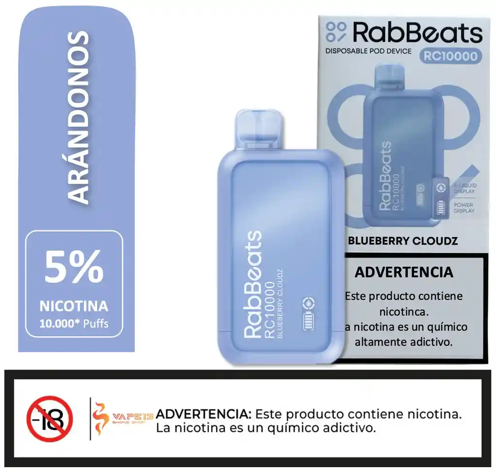 Arándanos - ADVERTENCIA: Prohibido su venta y/o comercialización a menores de Edad. Este producto contiene nicotina. La nicotina es un químico altamente adictivo.