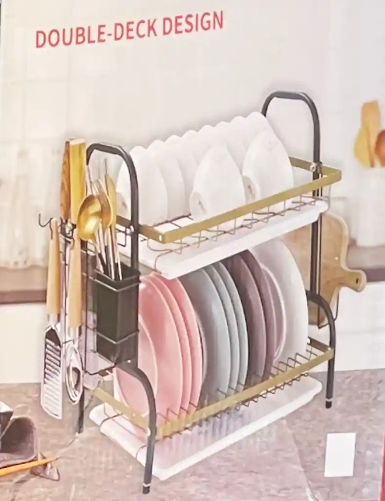 Medidas apróx: 38x40x23cm 1. Rejilla de secado de platos duradera 2. Estante para cubiertos extraíble: Este estante para cubiertos con agujeros tiene 2 compartimentos, adecuado para almacenar cucharas y cuchillos. Fácil de desmontar y limpiar. 3 Rack compactos para espacios pequeños: Este estante para platos puede contener platos y tazas, cubiertos etc. Ahorra espacio y es fácil de usar. 4. Elegante estante para lavavajillas: mantenga sus utensilios de cocina secos en su lugar para acelerar su proceso de lavado de platos. 5. Fácil mantenimiento: fácil de limpiar con algodón, tela de microfibra u otro paño suave, o lavar con jabón suave y agua