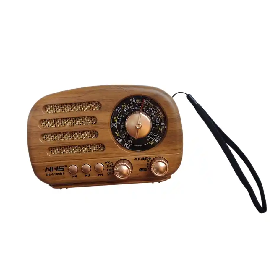Radio AM FM Recargable Cafe Madera con Entrada USB y SD Bluetooth NNS