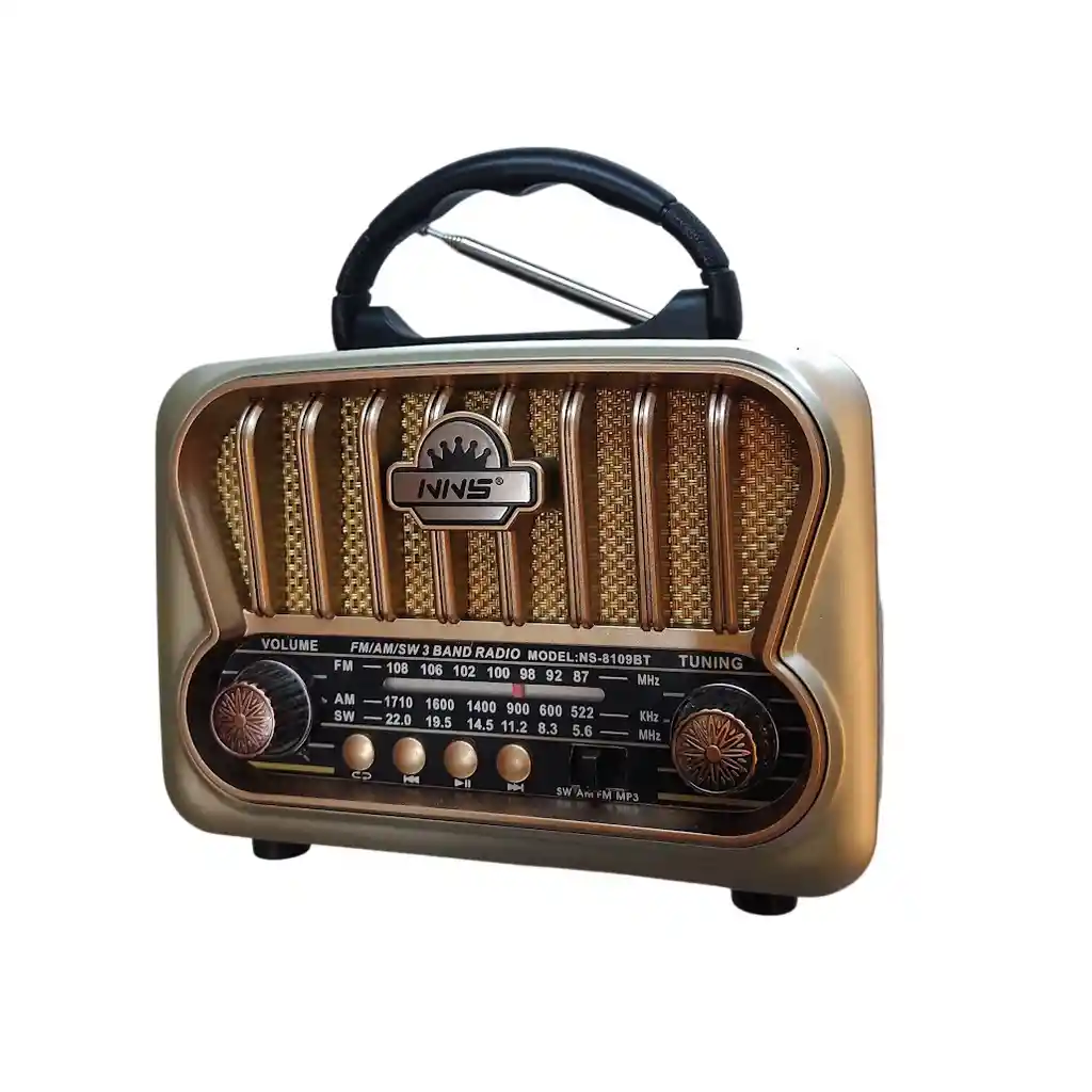 Radio AM FM Recargable Cafe Madera Dorado con Entrada USB y SD Bluetooth NNS 8109