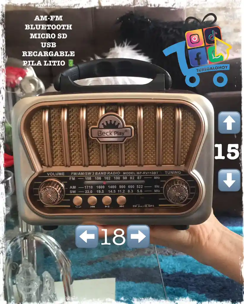 1️⃣ Alta Frecuencia am-fm-sw 2️⃣ conexión Bluetooth 3️⃣ pila litio 4️⃣ Panel Solar 5️⃣ batería De Litio interna recargable ✅ Compartimento para pila externa ⏯ Sistema USB - Micro SD ↔️18 x ↕️ 15