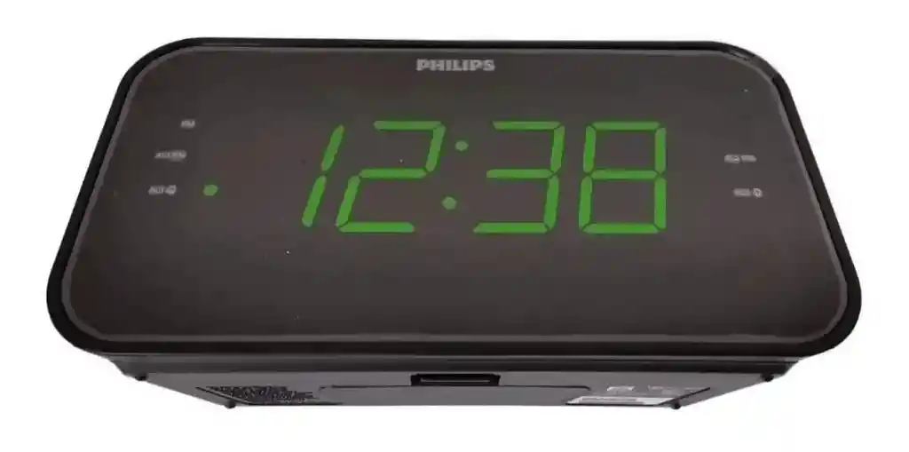 Reloj Despertador Doble Alarma DESCRIPCIÓN gran sonido y comodidad, ofrece lo mejor de la radio con sintonización digital FM. Una gran pantalla te indica la hora de un vistazo y la energía de reserva integrada garantiza que te despertarás a tiempo incluso después de un corte del suministro de energía CARACTERÍSTICAS Pantalla grande FM, sintonización digital Doble alarma Energía de reserva para reloj y alarma Medidas: 19cm x 10cm x 6,5cm Peso: 302 gramos QUE INCLUYE LA COMPRA X1 Reloj Alarma X1 Cargador