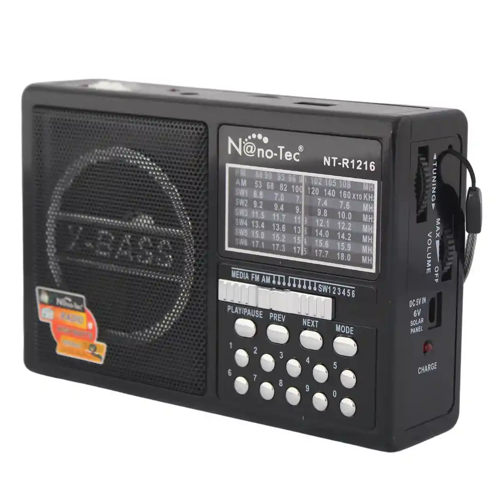 El Radio cuenta con un poderoso sistema de sonido para escuchar tu música con los más altos estándares, Además cuenta con las funciones básicas. es 8 BANDAS (FM-AM-SW) Es ligero , recargable y cuenta con una linterna led , por lo que puedes llevarlo a cualquier lugar contigo. También puedes escuchar con este radio tus emisoras preferidas de las. Tiene alta sensibilidad para la recepción de las emisoras gracias a su antena telescópica. DETALLES Fácil de manejar y llevar. Potencia 10 Watt Radio AM/FM/SW Portatil, liviano, ideal para llevarlo a todas partes. Con él podrás escuchar tus emisoras y programas favoritos Alta sensibilidad de Recepcion Antena Telescopica Medidas: Alto 10 cm x Ancho 16 cm x Profundidad 5 cm Disponible en color negro Linterna Led Recargable