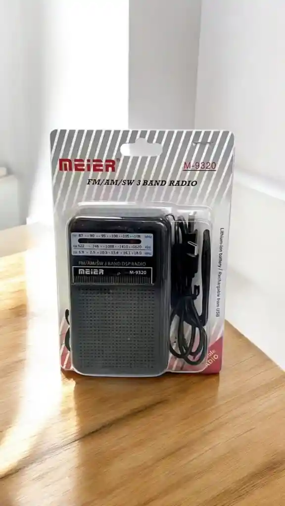 Radio Portátil de Bolsillo MEIER AM/FM 3 Bandas M-9320 •Volumen, interruptor de banda, enchufe, antena, batería, carga en 2 horas. •Disponible en Color Negro •Alto: 12cm •Ancho: 7cm •Profundidad: 3cm