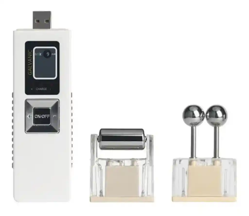 1 masajeador facial de radiofrecuencia iontoforesis galvániva Especificaciones: Voltaje de entrada: 100-240V Voltaje de salida: DC5V: 500mA Nombre del artículo: máquina galvánica para el cuidado de la piel Artículo 1: máquina de belleza de microcorriente galvánica Artículo 3: Dispositivo de belleza de iontoforesis galvánica Artículo 2: dispositivo masajeador de rodillo de microcorriente Recargable: Sí Función 2: estiramiento de la piel, reafirmante de la piel, antienvejecimiento. Material: Metal Función 1: Descomposición de pigmentos, introducir nutriente, quitar impurezas. Cómo funciona: El principio del tratamiento de inducción galvánica es extremadamente simple pero efectivo, la micro electricidad que envía el rodillo galvánico acelerará la absorción de moléculas nutritivas aplicadas en la superficie de nuestra piel y acelerará la velocidad de penetración y combinación con nuestras células cutáneas. Por lo general, cuando aplicamos lociones, solo se alimenta la derma superior de nuestra piel. Cualquier exceso restante se secará y se desgastará. El rodillo galvánico asegurará que la nutrición dentro de la loción alcance la derma inferior de nuestra piel y proporcionará la fuente beneficiosa imprescindible para la regeneración y el crecimiento celular. La sonda de rodillo está diseñada para las áreas abiertas de la cara y el cuello. Bola de la sonda La sonda esférica está diseñada para trabajar alrededor de los ojos y la nariz, dándote los mejores resultados. Uso recomendado Realice cada tratamiento durante 10 minutos, cuatro veces a la semana para comenzar. Una vez conseguido el objetivo, Úsalo solo dos veces a la semana. Función: -Reducción y eliminación de líneas finas y arrugas. -Mejora la circulación facial, reduce hipergimentación y el acné. -Transmite los nutrientes al estrato profundo de la piel, permitiendo que la piel sea suave y brillante. -Absorbe la suciedad en los poros, permitiendo que la piel tenga un brillo transparente. -El flujo de electrones se moverá al rodillo desde el estrato profundo de la piel, extrayendo las pequeñas partículas de suciedad e impurezas de los poros. Cómo usar: 1. Limpia completamente la cara con agua y jabón y seca. 2. Presione el botón ON/OFF para encender la unidad, los indicadores + y-alternativamente parpadearán. 3. Use un gel de limpieza en las áreas en las que va a trabajar para lograr los mejores resultados. 4. Presione el botón negativo (-) para limpiar la piel (desincrustación) y preparar la piel para la iontoforesis. 5. Para La iontoforesis, aplique un gel de iones de colágeno en las áreas en las que va a trabajar para lograr los mejores resultados. El paquete incluye: 1 x máquina principal 2 x cabezales 1 x adaptador de corriente 1 x Manual del usuario