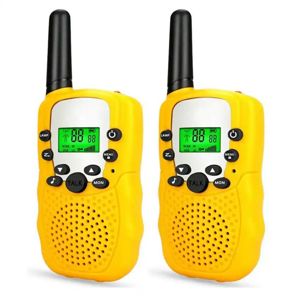 Walkie Talkie 2 uds intercomunicadores de mano inalámbricos 22 canales 2 vías radio, disfruta de un radio de 3 km a 5 km de comunicación ininterrumpida con un sonido claro, ideal para uso interior y exterior, largo tiempo de trabajo y comodidad de uso. Además de la linterna LED integrada, la pantalla LCD intuitiva, la función VOX y el control de volumen, este conjunto también está equipado con el sistema CTCSS para ayudar a proteger de interferencias externas puede configurar su propio canal privado para proteger la privacidad de la llamada, puede hablar con muchas personas en el mismo canal al mismo tiempo. Voz clara: nuestros walkie-talkies para niños cuentan con recordatorios de llamadas claros, calidad de sonido clara y suave y volumen ajustable. Equipado con una alta función antiinterferencias para reducir el ruido y mejorar la diversión de la interacción entre padres e hijos. Multifuncional: los niños walkie-talkie están equipados con una función de bloqueo de teclas, no tiene que preocuparse de que su hijo cambie el canal por error. La pantalla LCD retroiluminada garantiza que los niños puedan ver la pantalla claramente incluso bajo la luz solar directa o en la oscuridad. Linterna LED incorporada, adecuada para aventuras nocturnas al aire libre y emergencias. Diseño ergonómico: el cuerpo compacto y liviano hace que sea fácil de usar y transportar para los niños, con un diseño ergonómico que se adapta cómodamente a la mano de su hijo. Un simple botón de pulsar para hablar hace que este juguete sea fácil de usar para los niños. REGALOS para niños: Es un gran regalo de juguete de walkie talkie para niñas, niños, adolescentes y cumpleaños de niños de 3 a 12 años. Los walkie-talkies no son solo para niños, sino también para adultos. Los niños pueden explorar su entorno en casa o al aire libre, conversar o hacer juegos de rol con vecinos y amigos usando este adorable walkie-talkie. También se puede utilizar para acampar, pescar, caminar, ir de compras. Características: - Potencia de transmisión estable, fiable y alta sensibilidad de recepción, para garantizar la comunicación a larga distancia y la cobertura de la señal. - La calidad del sonido es clara y suave. - La señal es estable, el diálogo es claro y no tienes miedo de ser bloqueado por paredes. - La linterna integrada se puede iluminar y utilizar como luz de señal. - Utiliza ABS saludable, seguro y ecológico como materia prima. - Puedes ponerte en contacto con tus amigos o hijos. - Función de escaneo automático y ajuste de volumen. - Admite comunicación uno a uno y uno a más. - Diseño ergonómico para un agarre firme y completo con clip de cinturón, fácil de transportar. - La pantalla LED y el indicador de estado de la batería le permiten saber cuándo recargar o reemplazar las baterías. - Gran regalo para niños, amigos, familiares, viajes, festivales y cualquier actividad al aire libre. - Fácil de usar y muy fácil de operar, incluso para niños pequeños de todas las edades. Un simple botón lateral "pulsar para hablar", permite que los niños se comuniquen con facilidad. - Largo alcance y sonido claro ya sea en camping o simplemente divertirse por la casa, a los niños les encantan las radios bidireccionales para comunicarse con su familia y amigos. - Linterna LED integrada con pantalla LCD intuitiva, la función VOX y el control de volumen, este conjunto también está equipado con el sistema CTCSS para ayudar a proteger de interferencias externas. Especificaciones: • Canales: 22 • Código secundario: CTCSS: 38 DCS: 61 • Batería: 4 pilas AAA (no incluidas) • Frecuencia: frs: 462,55000-467,71250 mhz • Alcance: 3 a 5 km • Potencia de transmisión: 500mW • Tipo de modulación: F3E • Espaciado de canales: 12,5 khz • Material: ABS (Resistente al agua y al sol) • No son sumergibles • Tamaño del producto: 14.3 x 6.3 x 2.5 cm Paquete incluye: 2 * Walkie Talkie 1 * Manual de instrucciones