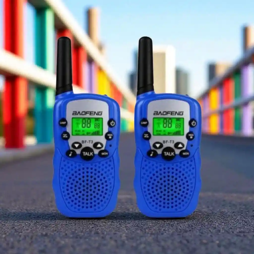¡Mantente en contacto! Walkie talkie Baofeng BF-T3 Con un generoso rango de cobertura (al aire libre sin obstáculos) puedes estar conectado con tus amigos y familiares fácilmente por ejemplo en una salida de picnic o mientras disfrutas de la playa o un parque. La calidad del sonido es excelente y la exploración automática de canales es una forma rápida de encontrar un canal abierto y de chat. Incluye mini-linterna incorporada con un LED para emergencias. CARACTERÍSTICAS: -22 Canales -Función VOX -Gran calidad de sonido -Pantalla LCD retro-iluminada -Mini linterna LED incorporada -Funciona con 4 pilas AAA (No incluidas) -Encuentra un canal abierto rápidamente con la exploración automática de canales -Ideal para supermercados, centros comerciales, festivales y cualquier actividad al aire libre -Amplio alcance -Funciona con baterías AAA no incluidas. TE ENTREGAMOS: •2 Walkie Talkie Baofeng BF-T3 •Disponible en color Azul