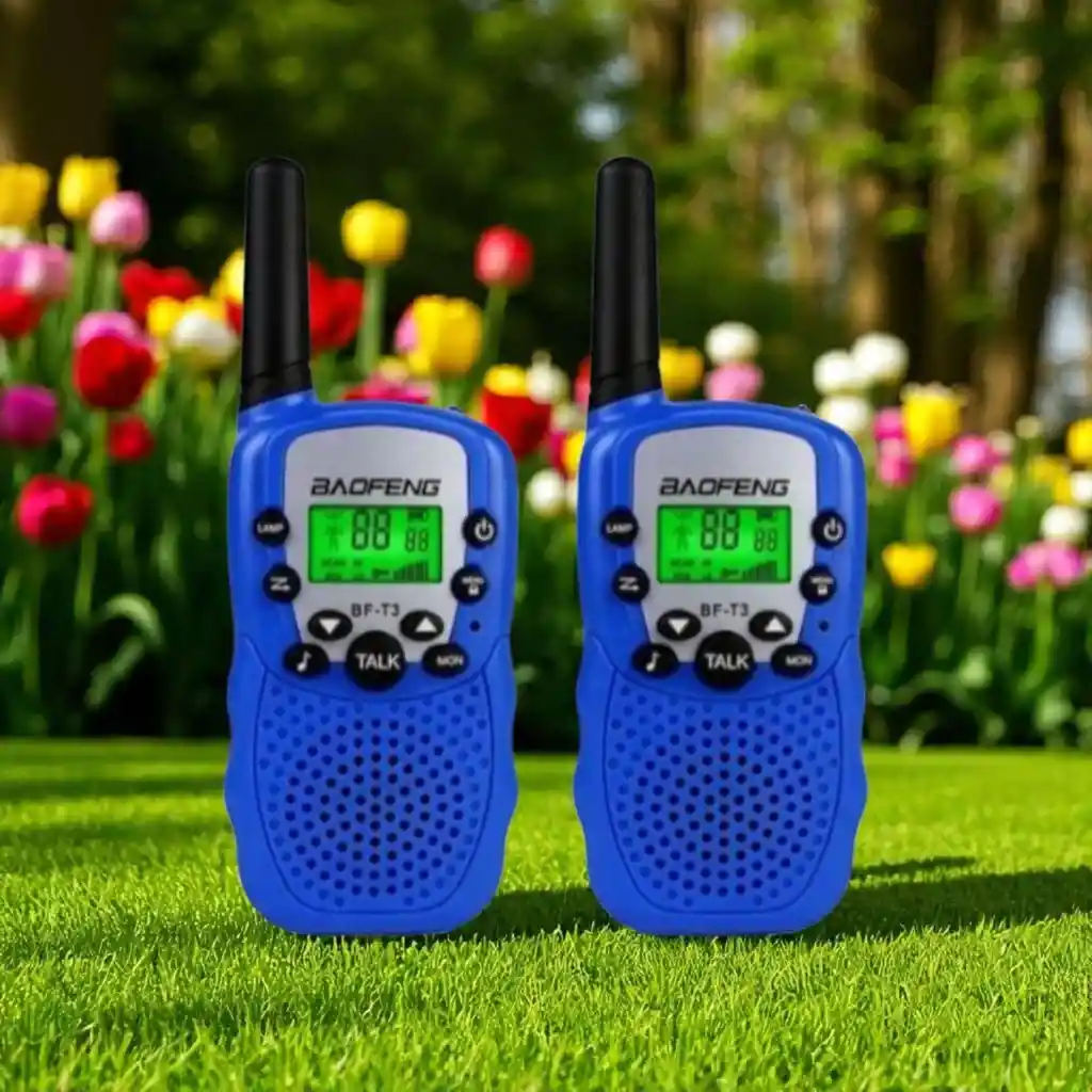 ¡Mantente en contacto! Walkie talkie Baofeng BF-T3 Con un generoso rango de cobertura (al aire libre sin obstáculos) puedes estar conectado con tus amigos y familiares fácilmente por ejemplo en una salida de picnic o mientras disfrutas de la playa o un parque. La calidad del sonido es excelente y la exploración automática de canales es una forma rápida de encontrar un canal abierto y de chat. Incluye mini-linterna incorporada con un LED para emergencias. CARACTERÍSTICAS: -22 Canales -Función VOX -Gran calidad de sonido -Pantalla LCD retro-iluminada -Mini linterna LED incorporada -Funciona con 4 pilas AAA (No incluidas) -Encuentra un canal abierto rápidamente con la exploración automática de canales -Ideal para supermercados, centros comerciales, festivales y cualquier actividad al aire libre -Amplio alcance -Funciona con baterías AAA no incluidas. TE ENTREGAMOS: •2 Walkie Talkie Baofeng BF-T3 •Disponible en color Azul