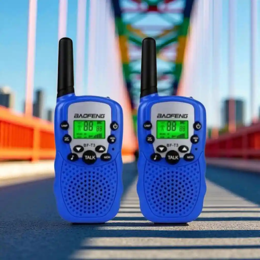 ¡Mantente en contacto! Walkie talkie Baofeng BF-T3 Con un generoso rango de cobertura (al aire libre sin obstáculos) puedes estar conectado con tus amigos y familiares fácilmente por ejemplo en una salida de picnic o mientras disfrutas de la playa o un parque. La calidad del sonido es excelente y la exploración automática de canales es una forma rápida de encontrar un canal abierto y de chat. Incluye mini-linterna incorporada con un LED para emergencias. CARACTERÍSTICAS: -22 Canales -Función VOX -Gran calidad de sonido -Pantalla LCD retro-iluminada -Mini linterna LED incorporada -Funciona con 4 pilas AAA (No incluidas) -Encuentra un canal abierto rápidamente con la exploración automática de canales -Ideal para supermercados, centros comerciales, festivales y cualquier actividad al aire libre -Amplio alcance -Funciona con baterías AAA no incluidas. TE ENTREGAMOS: •2 Walkie Talkie Baofeng BF-T3 •Disponible en color Azul