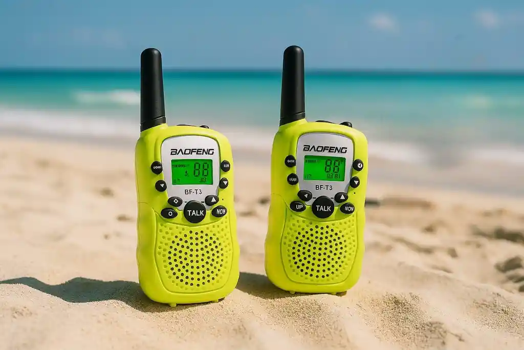 ¡Mantente en contacto! Walkie talkie Baofeng BF-T3 Con un generoso rango de cobertura (al aire libre sin obstáculos) puedes estar conectado con tus amigos y familiares fácilmente por ejemplo en una salida de picnic o mientras disfrutas de la playa o un parque. La calidad del sonido es excelente y la exploración automática de canales es una forma rápida de encontrar un canal abierto y de chat. Incluye mini-linterna incorporada con un LED para emergencias. CARACTERÍSTICAS: -22 Canales -Función VOX -Gran calidad de sonido -Pantalla LCD retro-iluminada -Mini linterna LED incorporada -Funciona con 4 pilas AAA (No incluidas) -Encuentra un canal abierto rápidamente con la exploración automática de canales -Ideal para supermercados, centros comerciales, festivales y cualquier actividad al aire libre -Amplio alcance -Funciona con baterías AAA no incluidas. TE ENTREGAMOS: •2 Walkie Talkie Baofeng BF-T3 •Disponible en color Verde