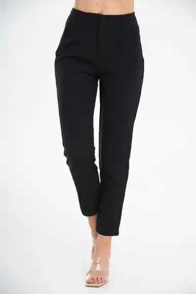 Pantalón en Tafetán Fondo Entero Tiro Alto Con Cierre de Ajuste Fit Skinny Con Pinzas y Ribete Decorativo.