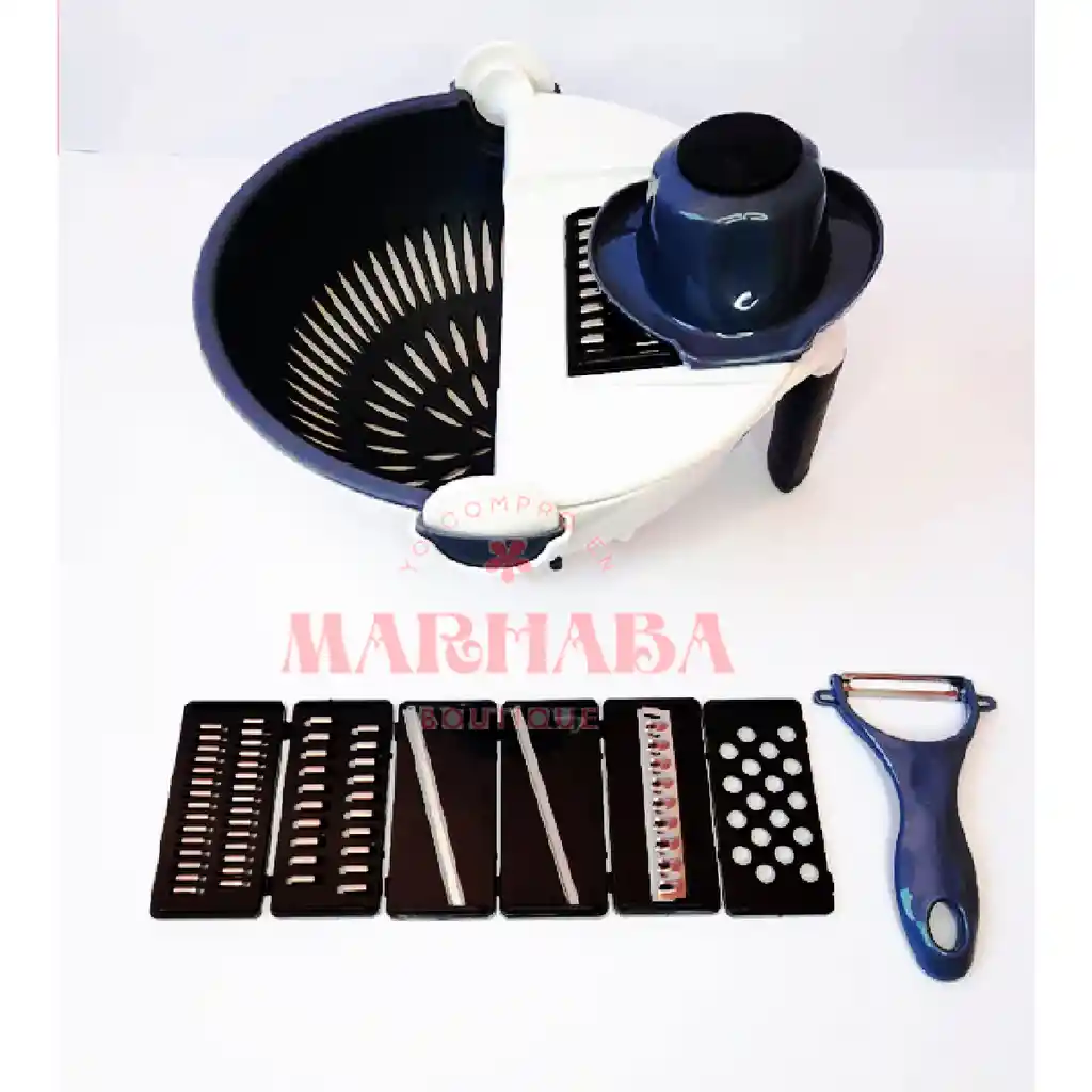 La cortadora de vegetales viene con una característica de drenaje única que le permite limpiar los vegetales directamente a través de su sistema después de cortarlos. Con 7 cuchillas reemplazables, puede cortar queso, tomate, cebolla, pepino y repollo en diferentes formas, tamaños y grosores, puede usar una cabeza de cuchillo diferente según sus requisitos El mango cómodo se puede controlar con una mano La cubierta de corte se puede quitar libremente para facilitar su uso. Cuchillas de acero inoxidable. INCLUYE: 1 Rallador 9 en 1. 3 Trituradora. 2 Rebanadora. 1 Cortador de flores. 1 Molienda de ajo. 1 Cortador de pelado. 1 Sujetador de alimentos.