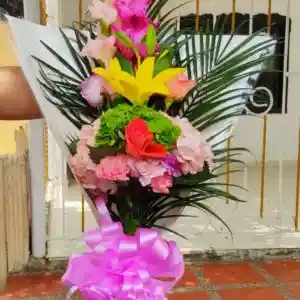 Arreglo De Mano Elaborado Con Lirios , Gladiolos , Hortencias , Rosas , Palmas Y Aster