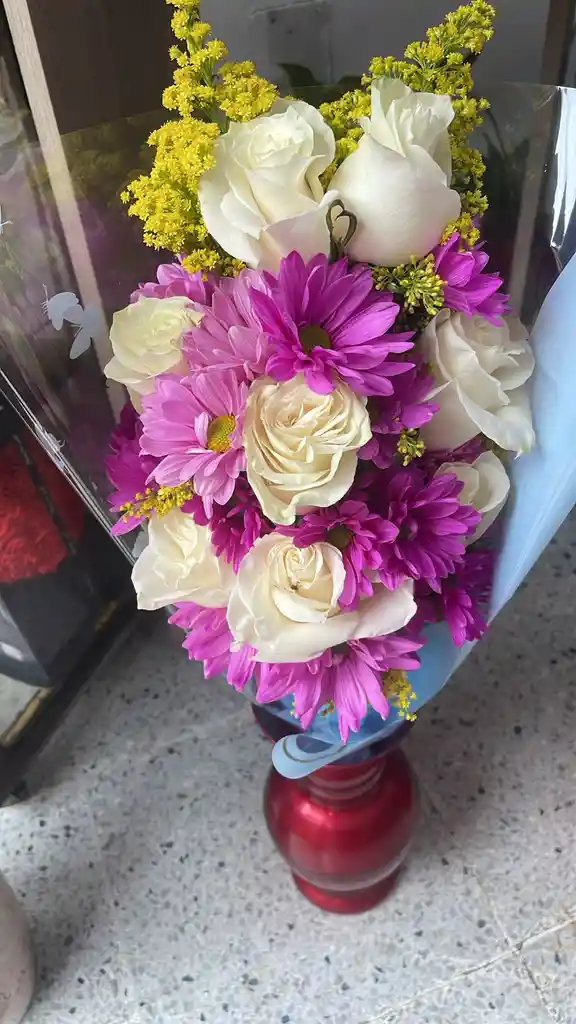 Ramillete acostado con rosas blancas frescas. Un detalle que refleja pureza, paz y elegancia.