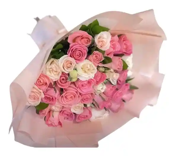 RAMILLETE DE 30 ROSAS TONOS PASTELES, DECORADO EN PAPEL COREANO,