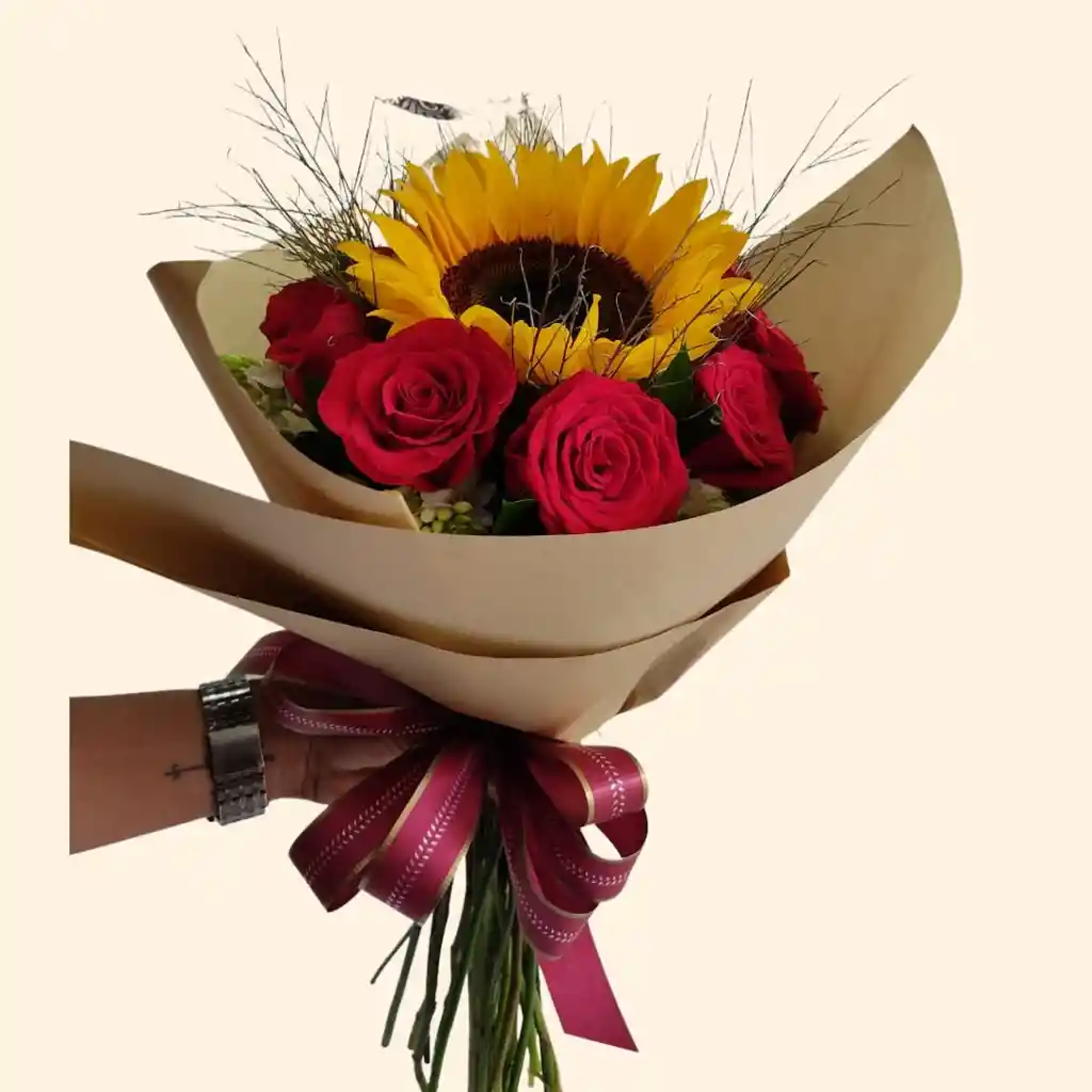 Incluye: Rosas, Girasol, Estrella de Belén, Complemento, Papel decorativo y Moño de color Multicolor ideal para el Felicitaciones