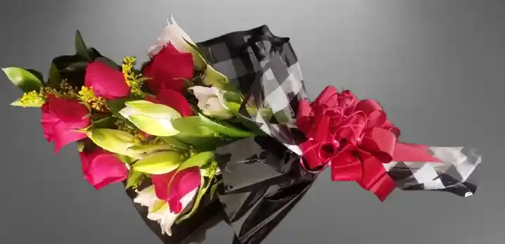 Ramillete 6 rosas rojas y 3 lirios