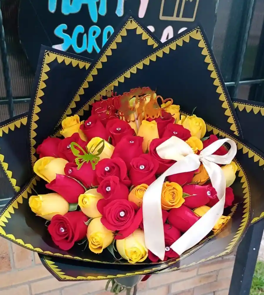 RAMO 36 ROSAS AMARILLAS Y ROJAS NO INCLUYE EL PIN DE HAPPY BIRHTDAY