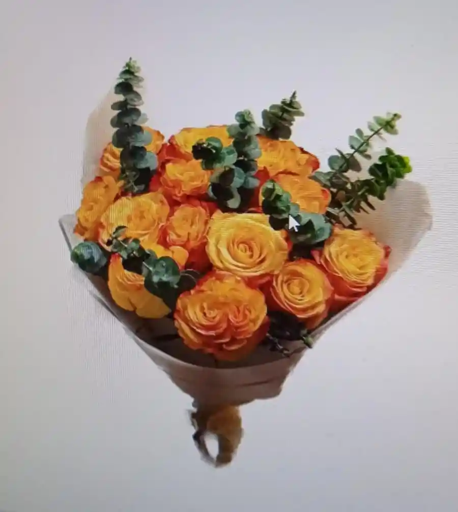 ramo de rosas amarillas con eucalipto