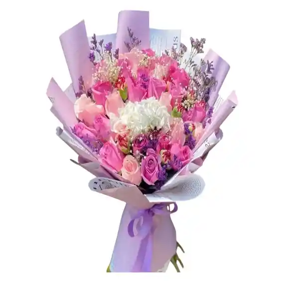 RAMO DE ROSAS, CLAVELES, MINI ROSAS, MARGARITAS, EN TONOS PASTEL, DECORADO EN PAPEL COREANO