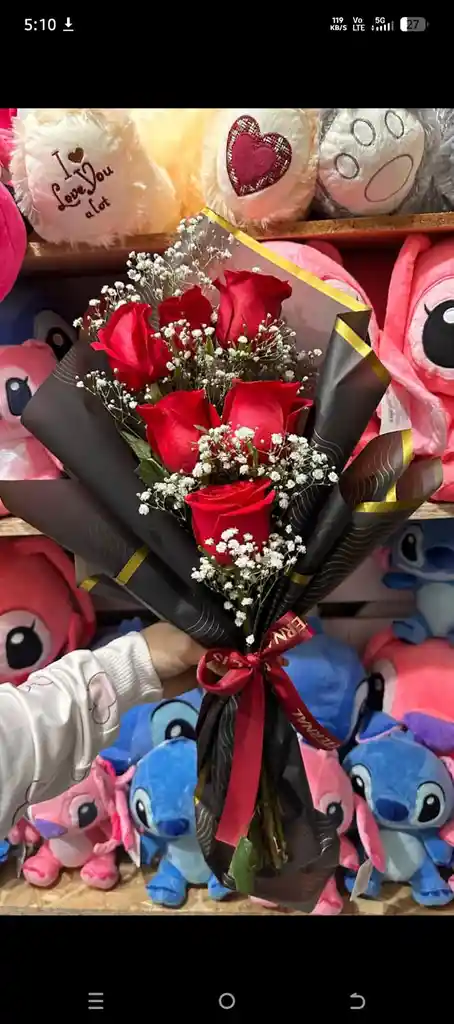 6 ROSAS ROJAS DECORADAS EN YIPSO Y PAPEL COREANO