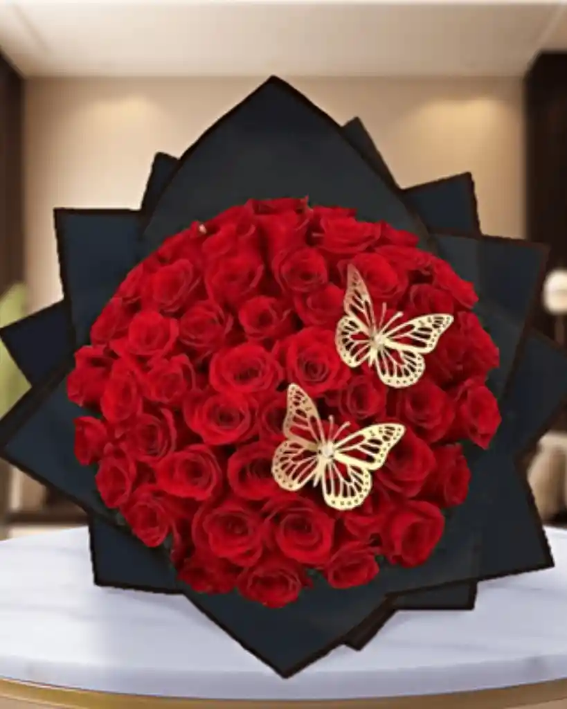 Rosa Roja : 50 pzs. Tallo: seleccionado (limpio de espinas). Presentación: Envoltorio de lujo en papel decorativo negro mate papel Coreano Extra: Tarjeta de dedicatoria premium de FloresYa Bogotá. Descripción: Existen momentos en la vida que exigen un gesto inolvidable, y en FloresYa Bogotá hemos creado este ramo para esas ocasiones donde las palabras no son suficientes. Nuestro Bouquet Pasión Infinita es una obra maestra compuesta por 50 rosas rojas de la más alta calidad, seleccionadas una a una para garantizar un impacto visual absoluto y una elegancia indiscutible. El contraste es la clave de su sofisticación: el rojo intenso y vibrante de las rosas resalta majestuosamente sobre nuestro exclusivo papel decorativo negro, creando una estética moderna y lujosa. Regalar 50 rosas tiene un significado profundo y poderoso: representa un amor que no conoce límites y una entrega total. Es el regalo definitivo para amantes de lo extraordinario y lo llamativo. Para asegurar que la experiencia sea duradera, algunas de nuestras rosas pueden llegar en botón; esto garantiza su frescura y te permite disfrutar del espectáculo de ver cómo se abren por completo en casa tras 24 o 48 horas. Si estás listo para declarar un amor eterno o celebrar un hito irrepetible, este ramo de 50 rosas es tu mejor aliado. ¡Haz tu pedido y deja que FloresYa entregue tu pasión en cualquier punto de Bogotá!