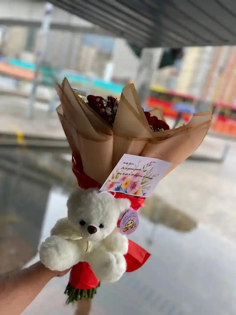 ramo de 24 rosas con peluche