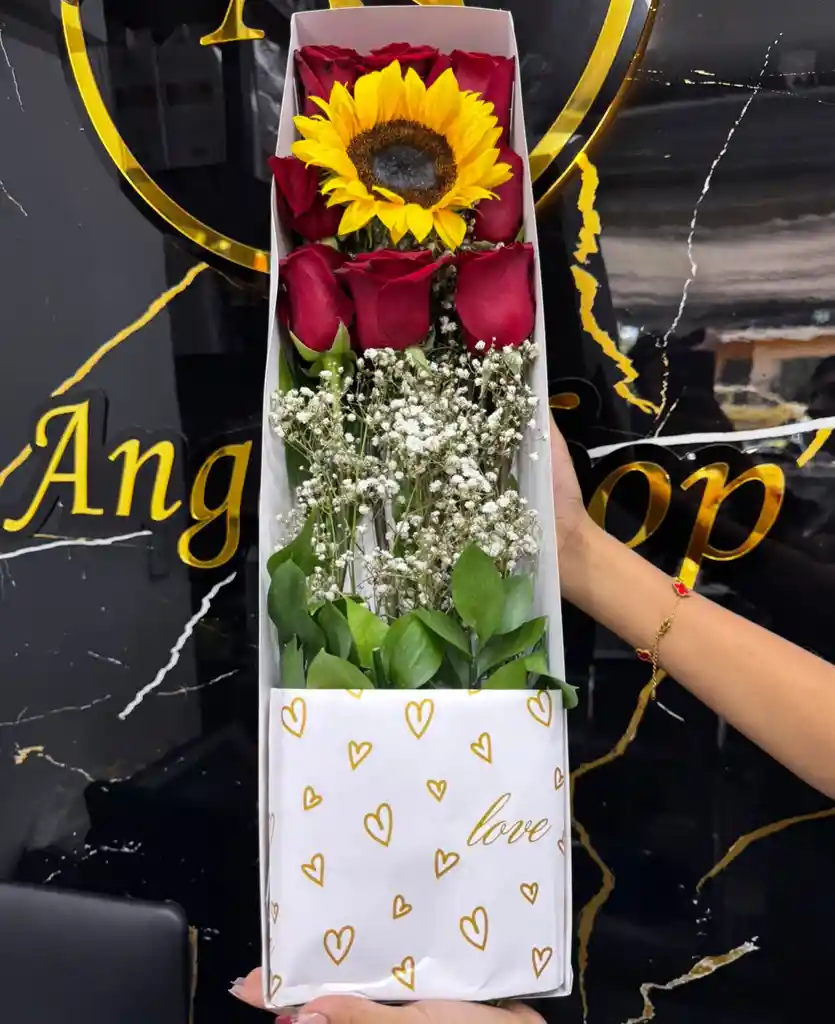 Ramo De 10 Rosas Con 1 Girasol Bouquet De Rosas Con Girasol