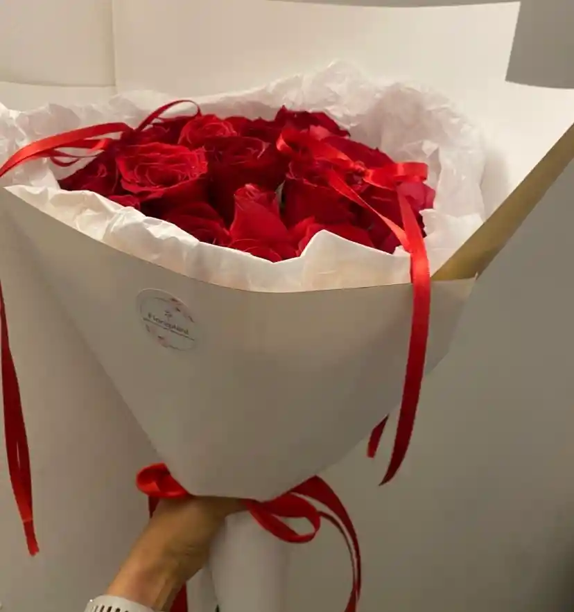 Ramo elegante con rosas rojas frescas de alta calidad, cuidadosamente dispuestas en un diseño sofisticado y minimalista 🤍🌹. Un detalle clásico que transmite amor, admiración y compromiso, ideal para sorprender en fechas especiales o cuando quieres decirlo todo sin palabras. Perfecta para: • Aniversarios ❤️ • Cumpleaños 🎂 • Declaraciones de amor 💌 • Detalles elegantes de último momento 🚀 Incluye envoltura premium y acabados delicados que elevan la experiencia del regalo. 📍 Entrega rápida por Rappi 📸 Imagen real del producto 🌿 Flores frescas seleccionadas Elegante ramo premium elaborado con rosas rojas frescas de alta calidad, cuidadosamente seleccionadas y dispuestas a mano. Presentado en empaque blanco sofisticado, papel protector interno y lazo rojo, ideal para expresar amor, pasión y admiración. Un detalle clásico y poderoso, perfecto para aniversarios, cumpleaños, fechas especiales o para sorprender sin motivo. Su diseño limpio y elegante lo convierte en un regalo inolvidable.