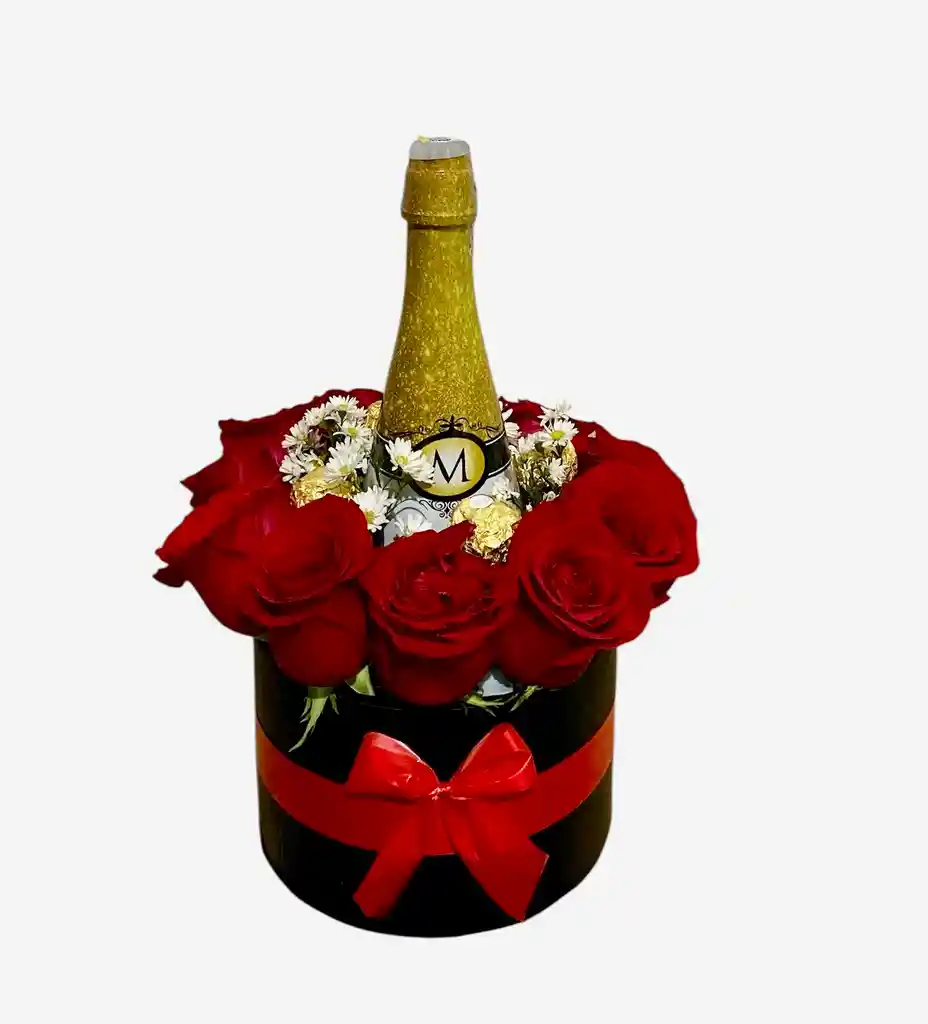 contiene 12 rosas rojas 1 champán 4 chocolates follaje decoración tarjeta personalizada ramo de rosas, ramo y champán. Ramo de chocolates bouquet de rosas. Cilindro lujoso de rosas regalo para mamá regalo para novia regalo para cualquier día. Feliz cumpleaños para cualquier ocasión