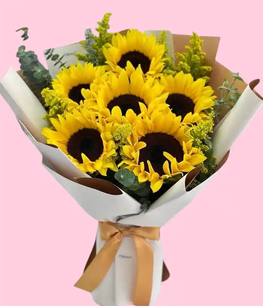 Contiene 6 Girasoles Follaje Tarjeta personalizada Escríbenos al chat para el mensaje de la tarjeta 3218119352 Etiqueta de búsqueda Regalo de cumpleaños Regalo para novia Arreglo de rosas para mi novia Ramo de flores Boquet de rosas rojas