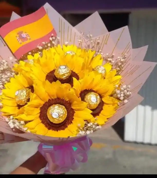 Contiene 8 Girasoles 8 chocolates Tarjeta personalizada