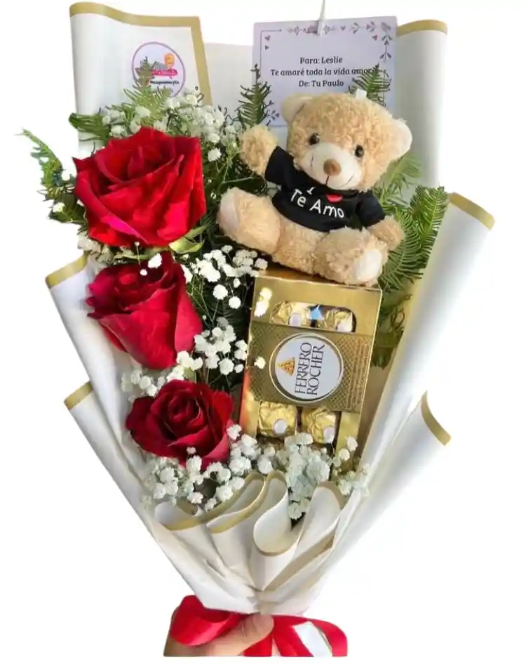 contiene 3 rosas rojas chocolates mini peluche follaje verde follaje blanco tarjeta personalizada ETIQUETAS DE BUSQUEDA Ramo de flores Ramo de rosas Bouquet de flores Bouquet de rosas Arreglo floral Ramo de flores con rosas rojas ramo de rosas rojas Arreglo de flores con rosas rojas ramo de rosas ramo de chocolates ramos de rosas y peluche