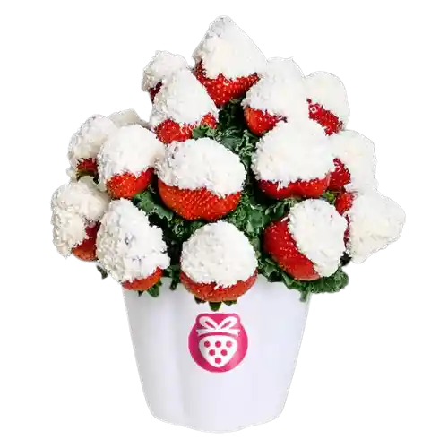 Ramo Frutal Con Deliciosas Fresas Cubiertas Con Chocolate Blanco y Lluvia de Coco Rallado. ¡Sorprende Con un Obsequio Único y Original! Mejores Regalos Que Las Rosas o Los Arreglos de Flores; Obsequia Arreglos Frutales Con Decofruta.