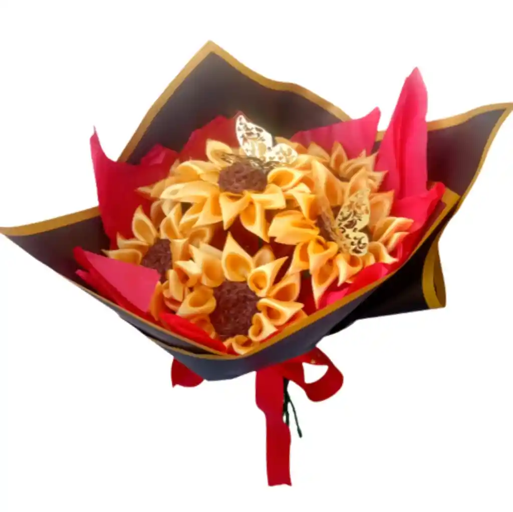 Descubre la elegancia eterna con nuestro Ramo de girasoles radiente eterno , diseñado para embellecer cualquier espacio sin preocuparte por su cuidado.