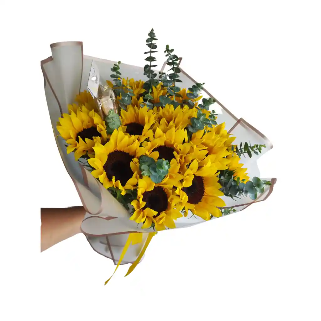 Ramo con 15 girasoles y follaje sujeto a disponibilidad.