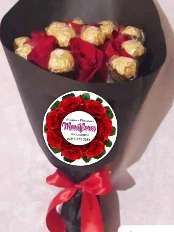 Un ramo de mano exquisitamente elegante y romántico, compuesto por deslumbrantes rosas rojas de tallo corto, cada una seleccionada a mano para garantizar su frescura y belleza. Este bouquet está adornado con 10 deliciosos chocolates Ferrero Rocher, envueltos en su icónico papel dorado, que añaden un toque de lujo y dulzura. Es el detalle perfecto para expresar amor y aprecio en cualquier ocasión especial.