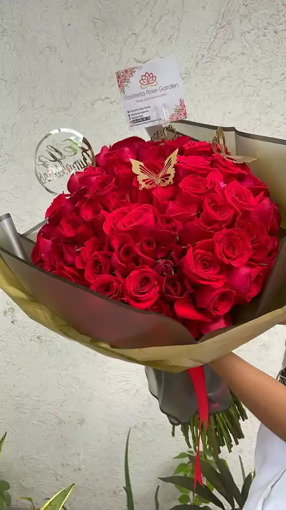 ramo buchon de rosas rojas (o color que desee el cliente) de 100 rosas