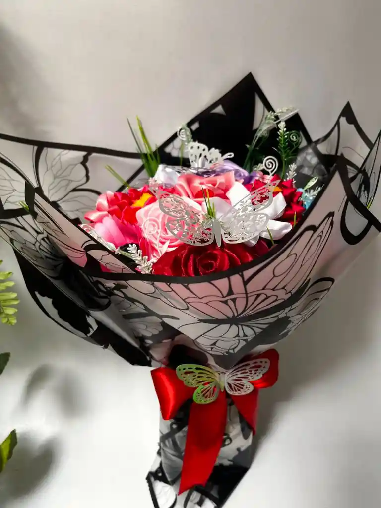 Arreglo flores varias - diversidad de colores y toper de mariposas
