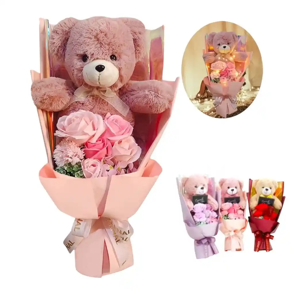 El ramo de rosas preservadas ARTIFICIALES está hecho de jabón que mantiene el olor durante varios meses, la caja incluye un ramo de flores artificiales rosas y un gran oso de peluche, una luz ,tarjeta y su caja de regalao. Una compra puede ser 2 regalos rosas y oso de peluche es de gama alta que combina con cualquier ocacion. Las flores artificiales pueden ser el regalo perfecto para mamá, novia, esposa, hija, amigos, profesores, abuela en el día de San Valentín, día de la madre, Acción de Gracias, cumpleaños, aniversario, Navidad, fiestas, etc